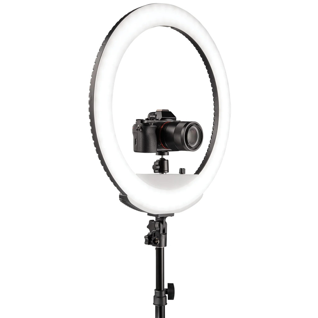 With user-friendly controls and a hassle-free setup, this 18" Bi-Color Ring Light is a breeze to use. Featuring adjustable color temperature, high color accuracy, and built-in diffusion, this LED ring light allows you'll create soft, flattering lighting that fills in shadows on the face and reflects signature, circular catchlights in the subject's eyes.